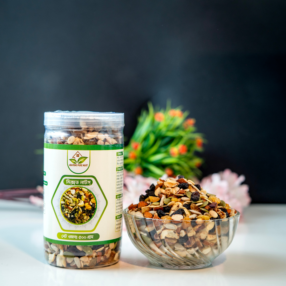 পরিবারের জন্য, স্নেহ মমতা, দায়িত্বে – Adarsho Pure Mart এর ‘’মিক্সট নাট (Mixed nuts)’’। ‘’মিক্সট নাট’’একটি জনপ্রিয় এবং স্বাস্থ্যকর খাবার। এতে থাকা স্বাস্থ্যকর ফ্যাট শরীরের জন্য উপকারী এবং নিয়মিত খেলে এটি পুষ্টির চাহিদা পূরণ করে। Adarsho Pure Mart এর ‘’মিক্সট নাট (Mixed nuts)’’সম্পূর্ণ প্রাকৃতিক এবং সর্বোচ্চ গুনগত মানের নিশ্চয়তা দেয়।